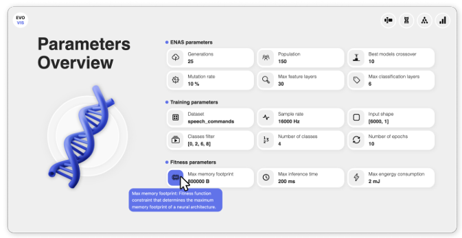 Evolutionary Neural Architecture Search contains and produces a high amount of meta information. Lea Dang developed a novel dashboard, EvoVis, that allows easy access to and investigation of this information.